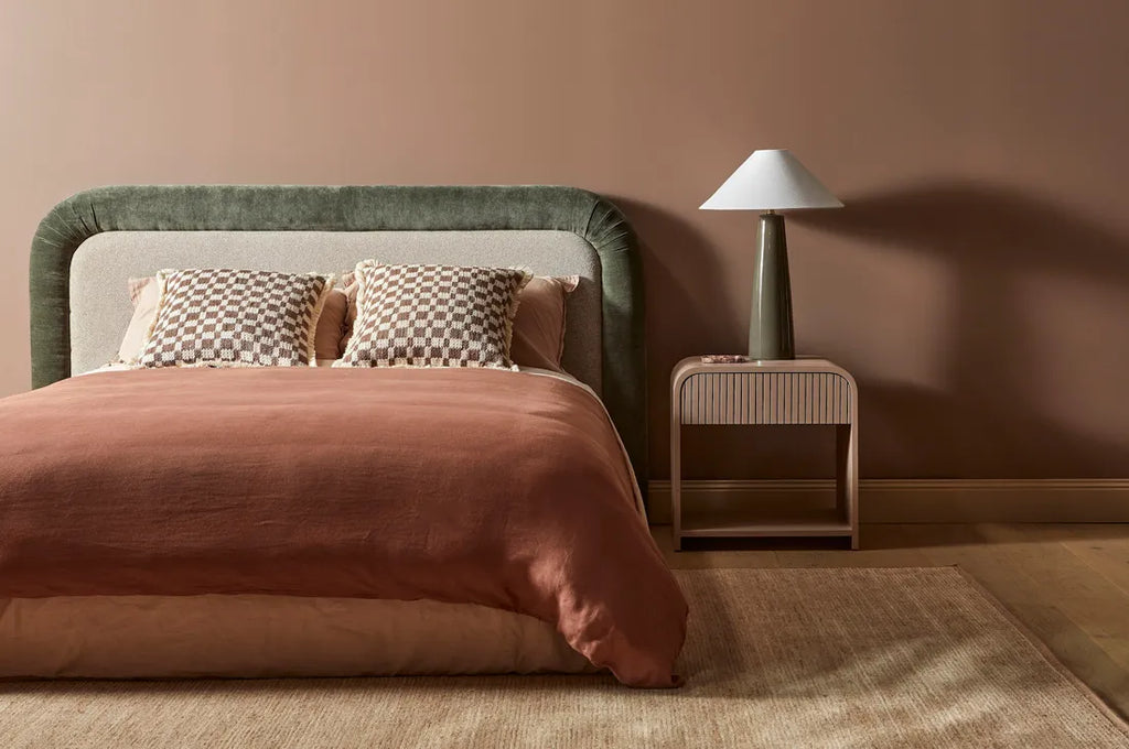 The Almos Chubby Bedhead Wide introduces a lavish element to bedrooms. This wide bedhead, features two-toned fabric, rounded corners, and a distinctive tubular edge. Designed to enhance the bed's visual appeal while offering supportive comfort for rest and relaxation.