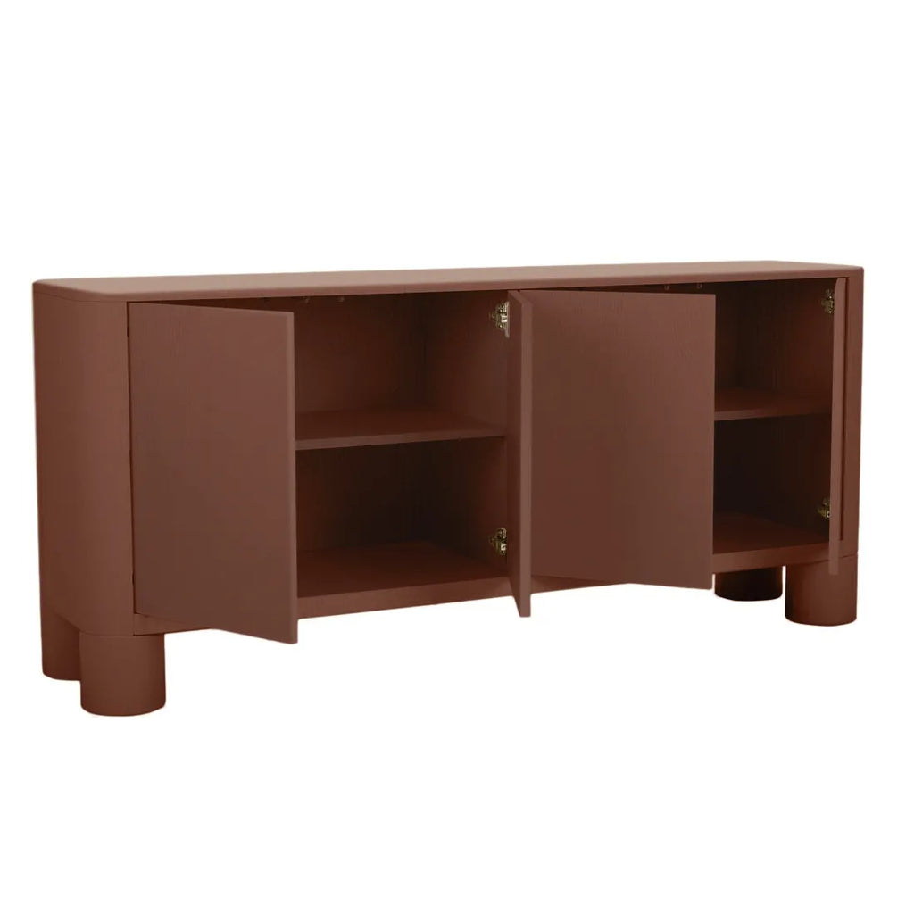 Crafted from wood veneer and coated in lacquer, this buffet is finished with a water based sealer - making it both sturdy and stylish. Comes with four push to open doors.