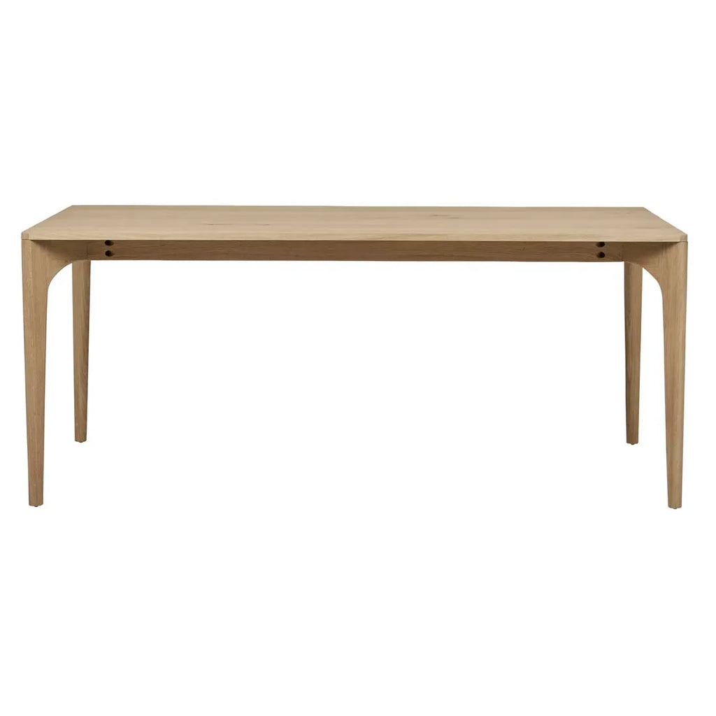 The Huxley curve dining table, with its graphic silhouette and bold lines, provides a subdued yet captivating centerpiece for your dining space. Its solid oak construction, combined with slightly tapered legs and contemporary design, adds a layer of intrigue to your home. Available in various sizes, the huxley can accommodate all your friends and family comfortably.