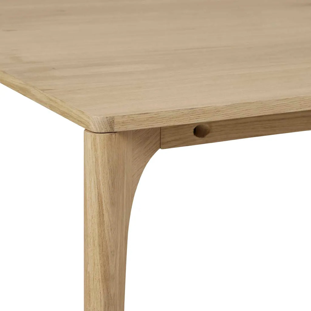 The Huxley curve features a sleek, curved oak and veneer table top expertly crafted upon sturdy solid oak tapered legs. The entire piece is finished with a water based sealer for added durability.