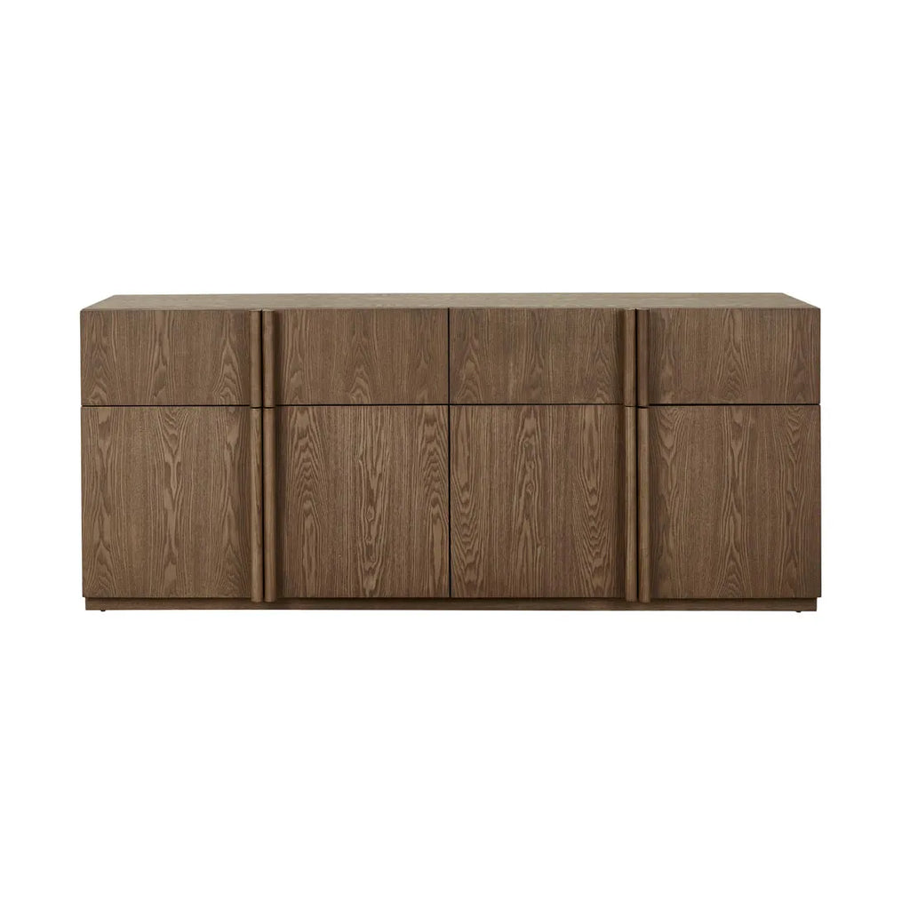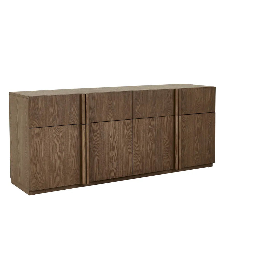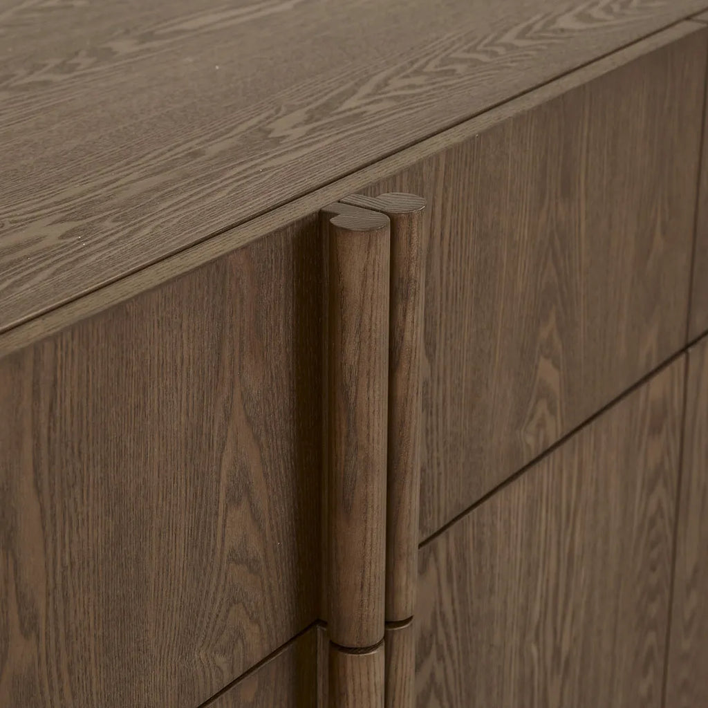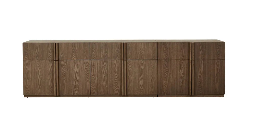 Kin Two Drawer Four Door Buffet in Shell is designed for contemporary homes, offering clean lines and a feature pillar handle. It combines with other modular cabinets from the Kin range to create a customised storage solution for any space, while the ash veneer finish ensures durability. With two drawers and four doors, it provides generous storage options. This buffet is the perfect combination of style and practicality, making it a must-have for modern living spaces.