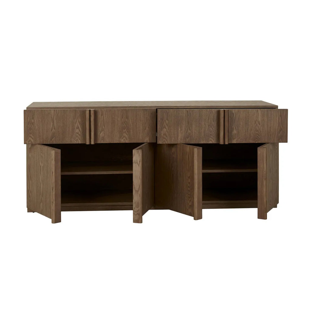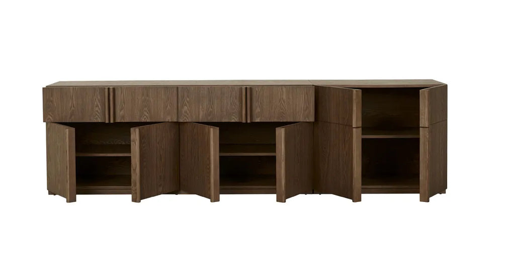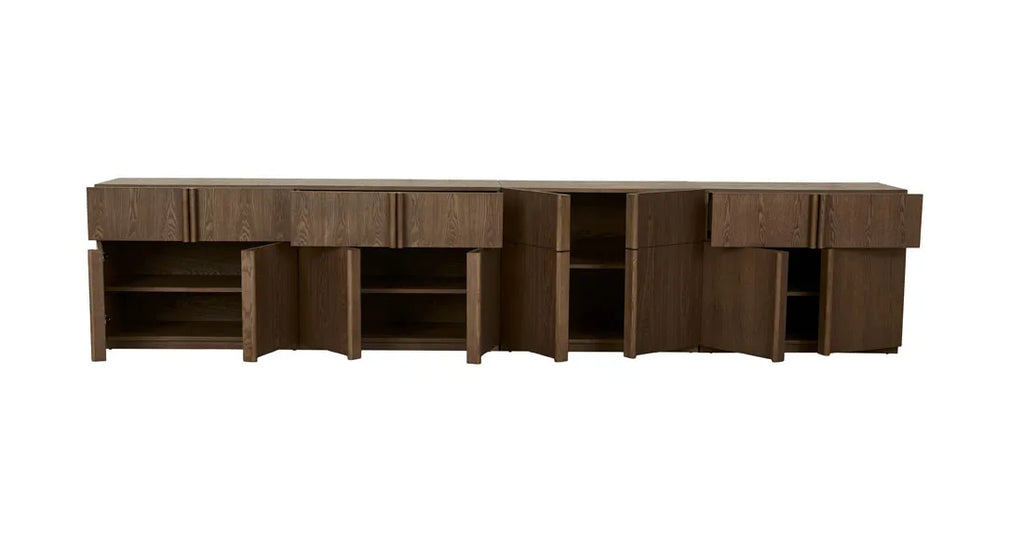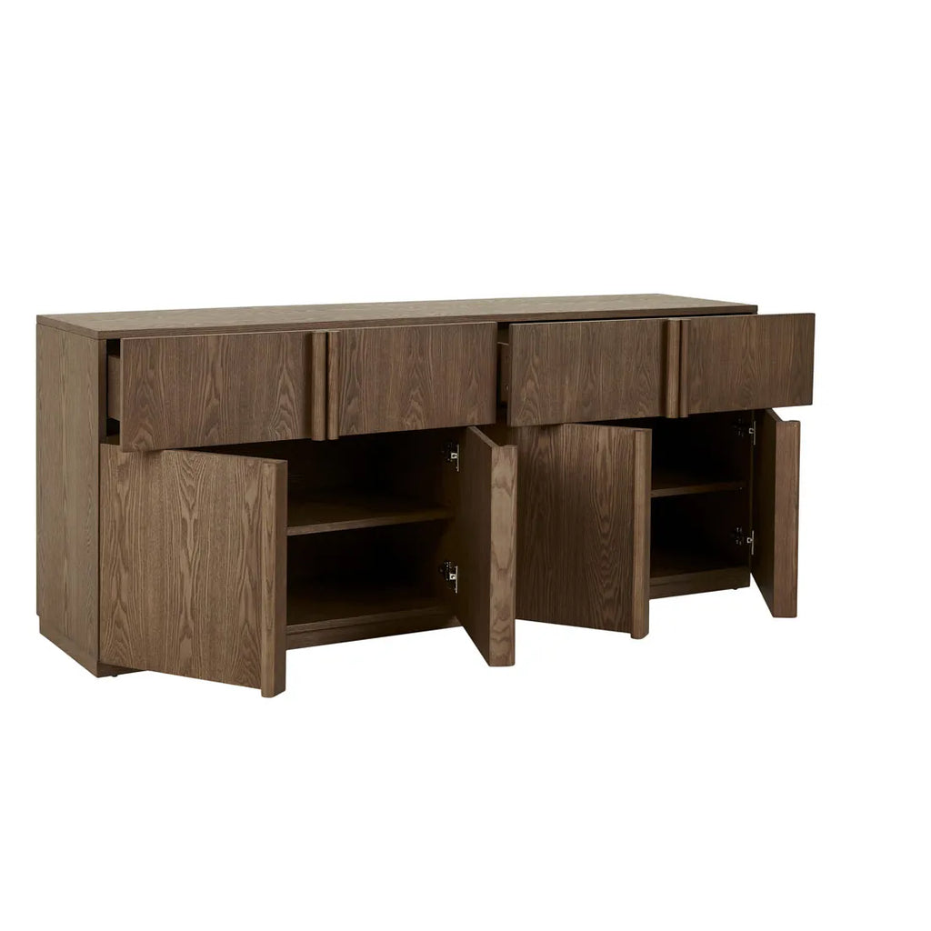 Crafted from exquisite ash veneers and sealed with a water-based finish, this unit boasts four doors, two spacious compartments with a convenient removable shelf, and two soft close drawers. Enhanced by luxurious hettich hinges, this piece exudes elegance with its soft close technology.