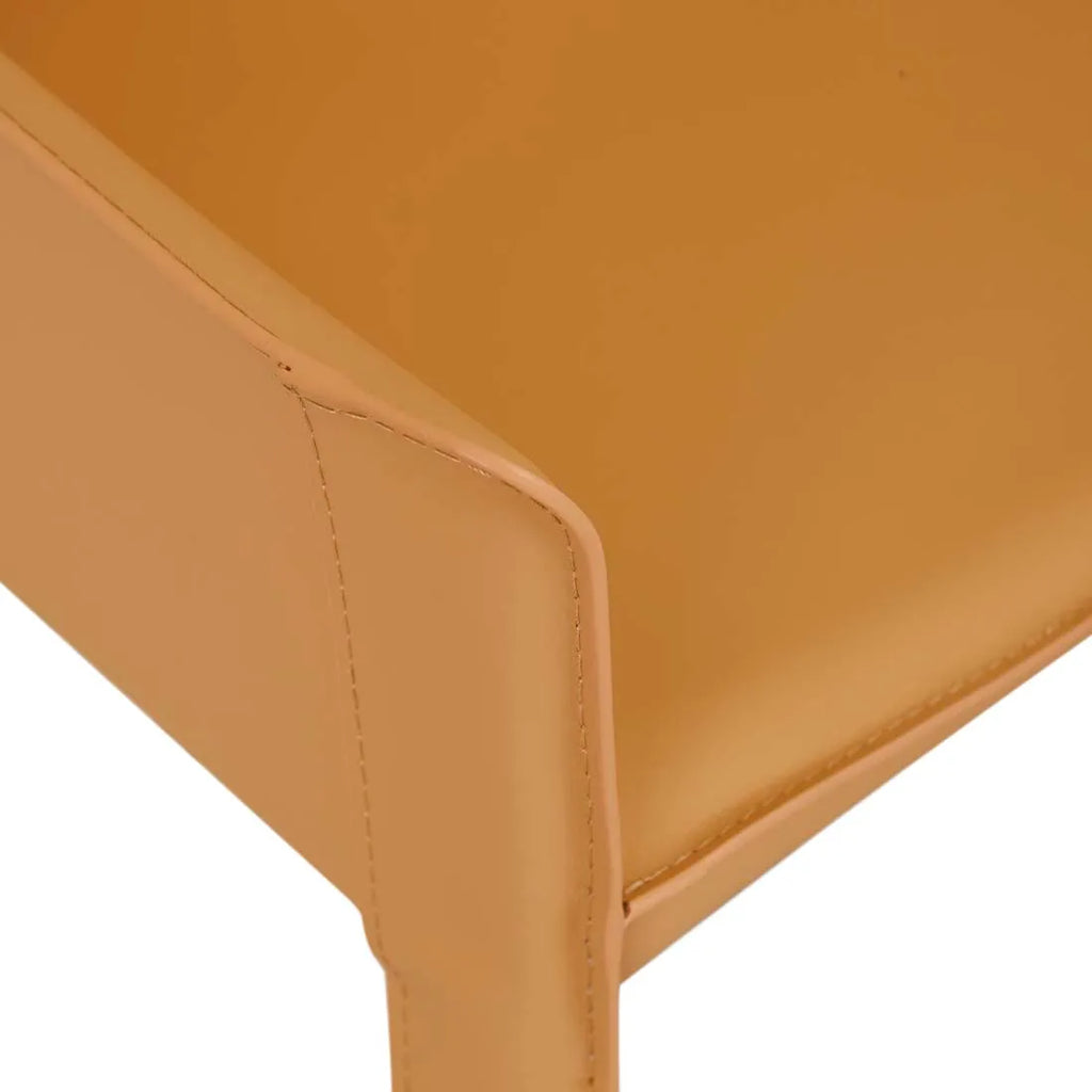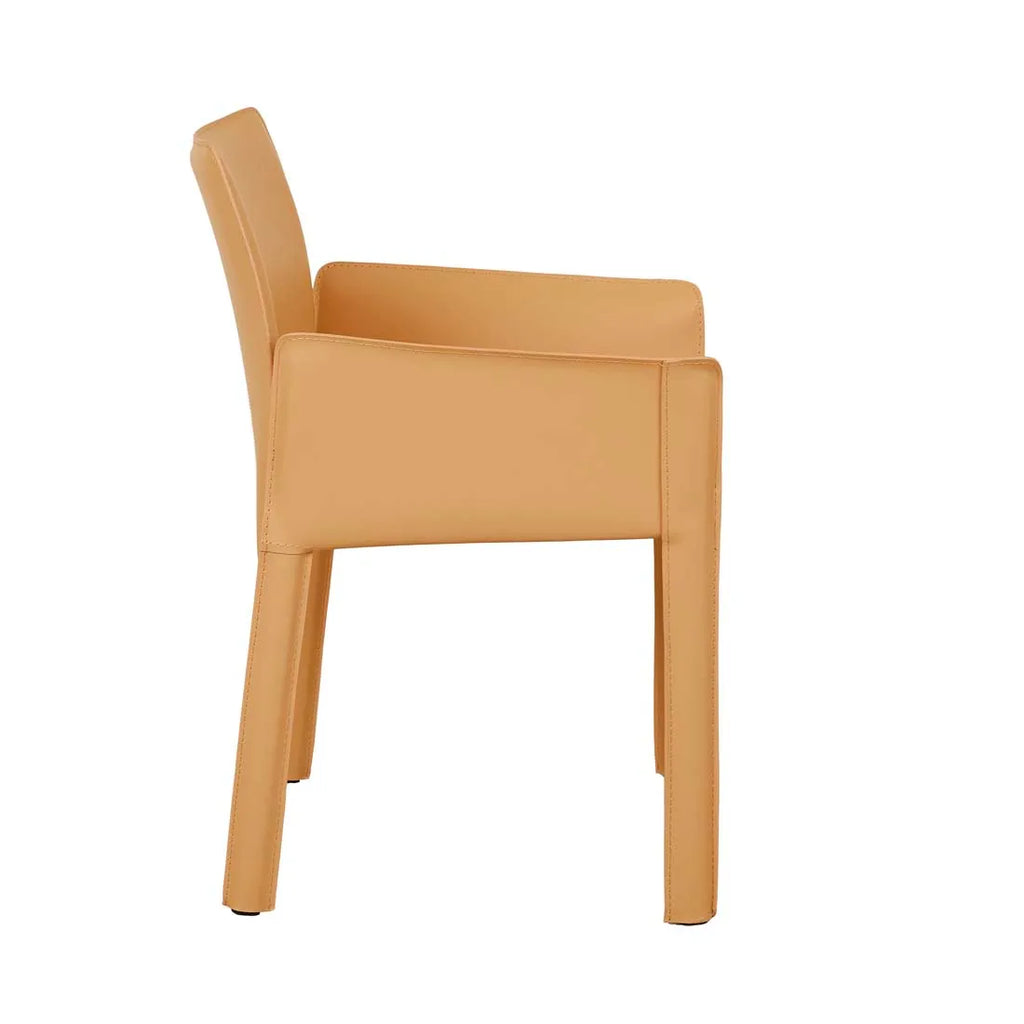 Sleek and sophisticated, the lachlan dining chair in tan combines strength with elegance. Its rounded arms and sleek design provide comfort and support, making it perfect for modern settings.