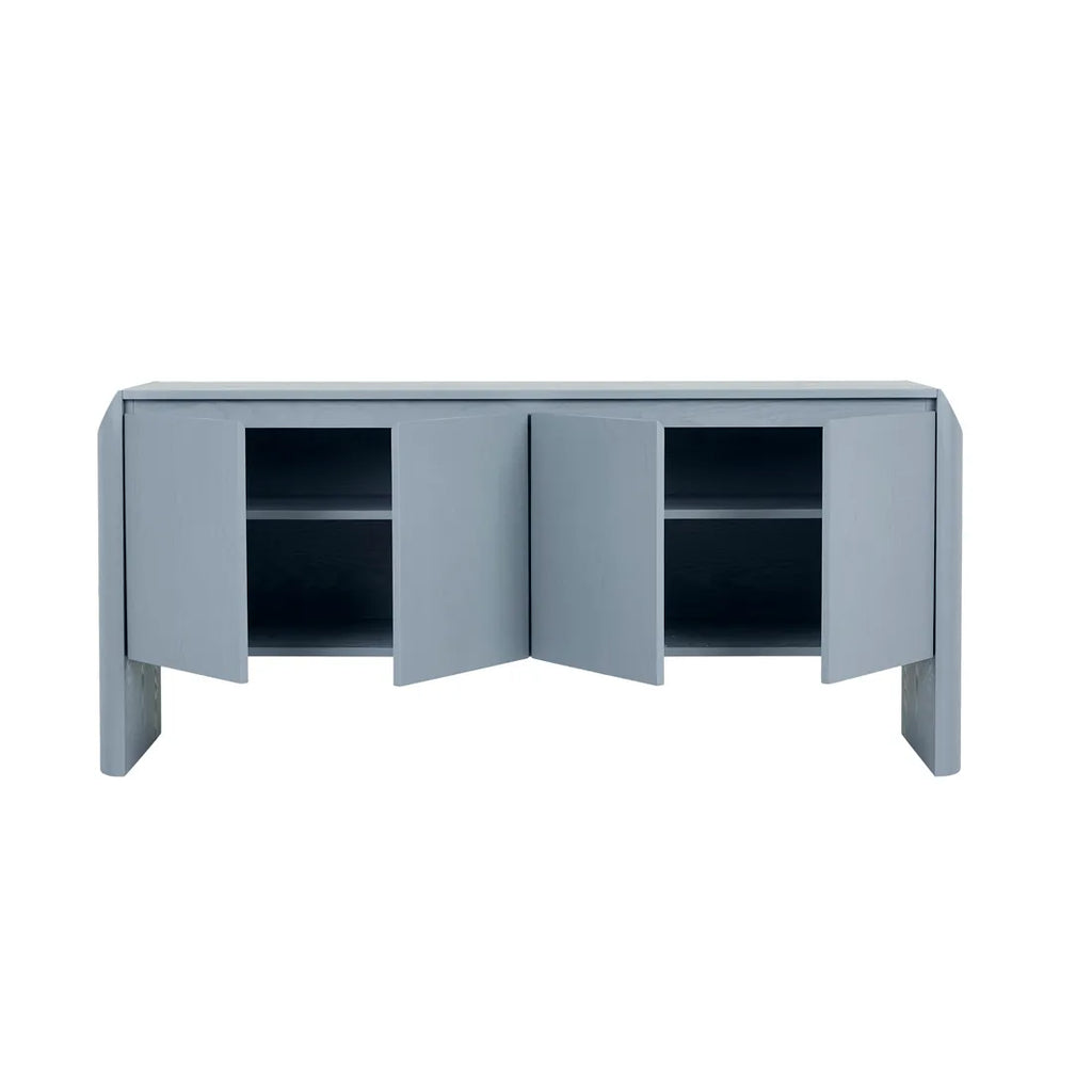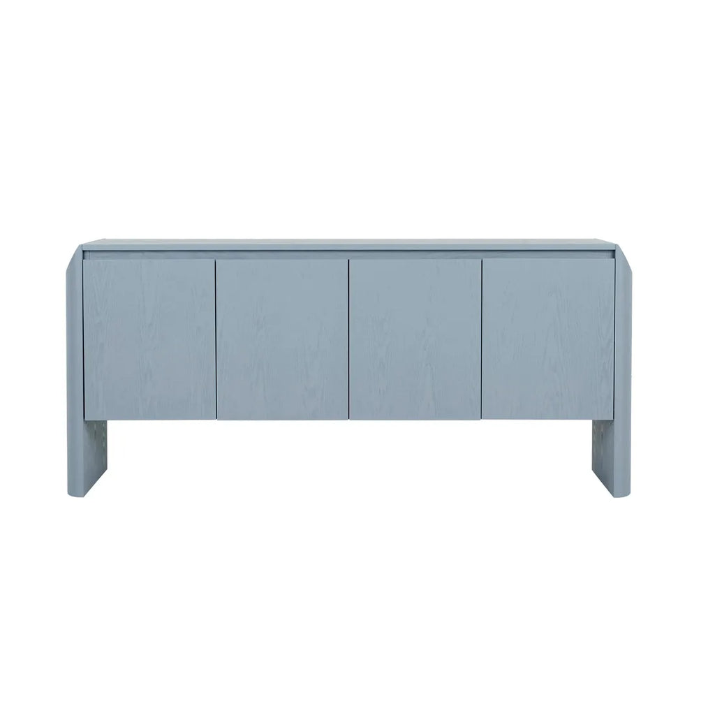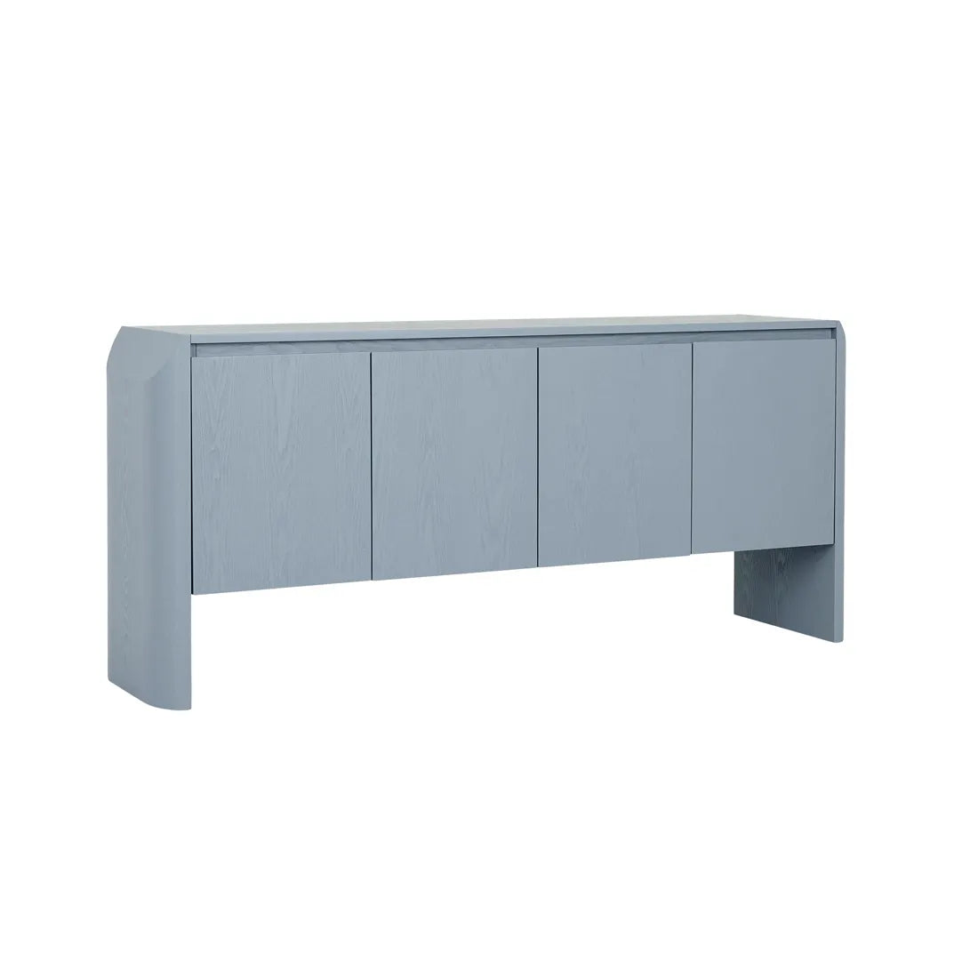 Contemporary curves contrast with modern form define the Luna Buffet's soft silhouette. Demi ellipse legs emerge gracefully beneath a lifted case creating visual lightness without functional compromise. Shadow line handles and painted ash veneer finish complete this sophisticated piece, merging seamless functionality with striking sculptural forms.