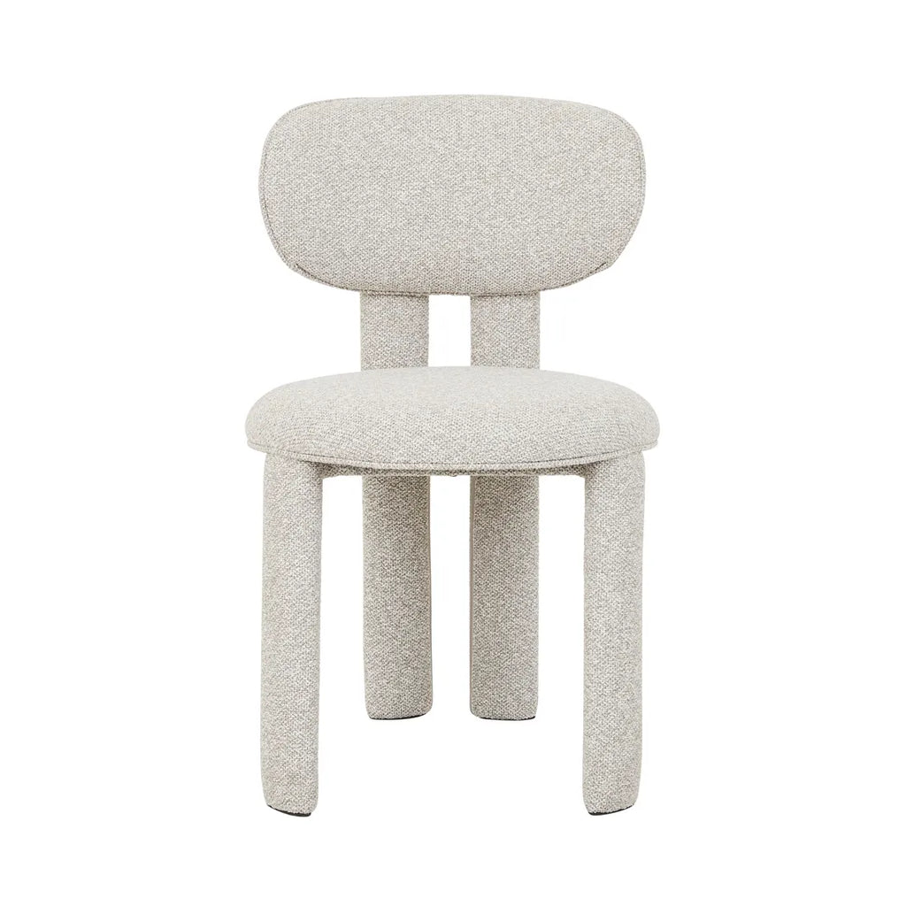 Sculptural elegance meets refined comfort through the Pedro Dining Chair's sophisticated silhouette. Luxurious micro-boucle fabric wraps generously around curved contours, creating harmonious proportions. Bold architectural elements merge seamlessly where backrest meets legs, showcasing masterful craftsmanship. Modern dining spaces gain distinctive character from this statement piece's minimalist form paired with and upholstery.