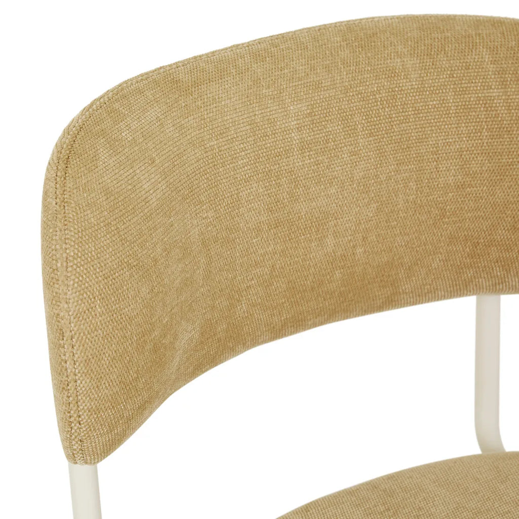 Crafted on a sturdy steel frame with sleek powder coating, this dining chair features a soft, easy-to-clean 100% polyester upholstery.