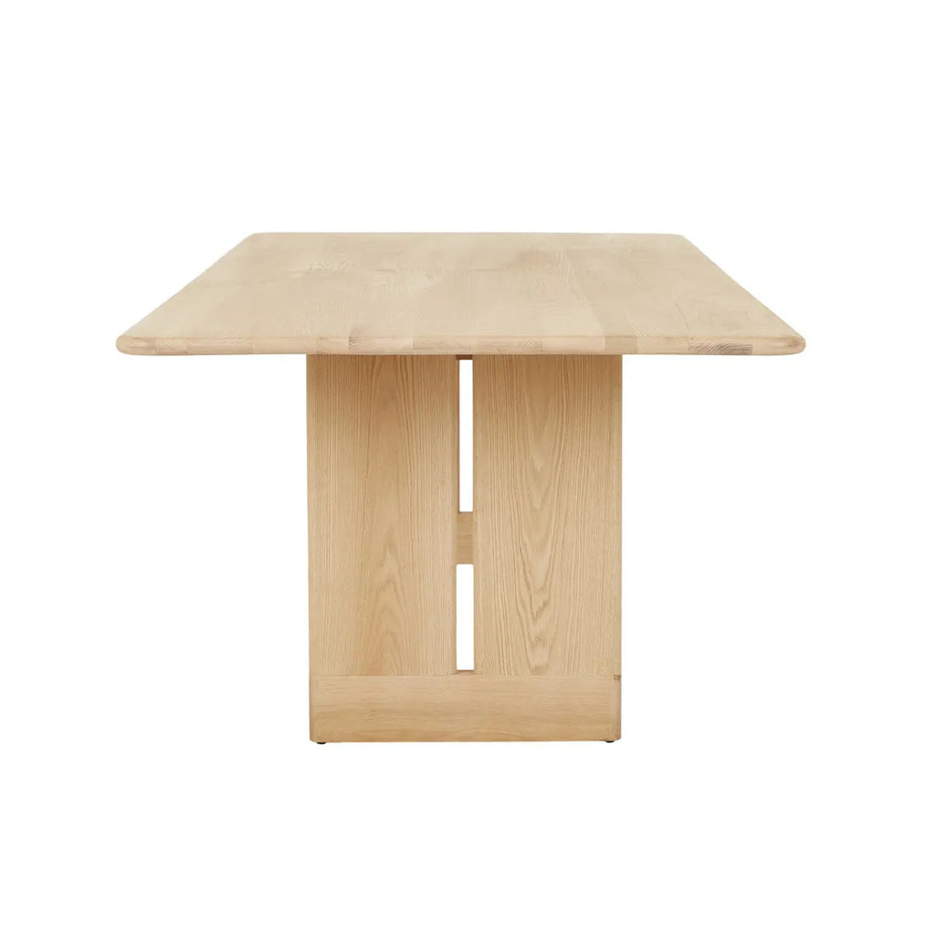 Architectural precision meets natural beauty in the Smith Dining Table, showcasing premium solid oak through traditional mortise and tenon joinery. Soft rounded edges create fluid lines across this contemporary masterpiece, highlighting refined craftsmanship at every angle.