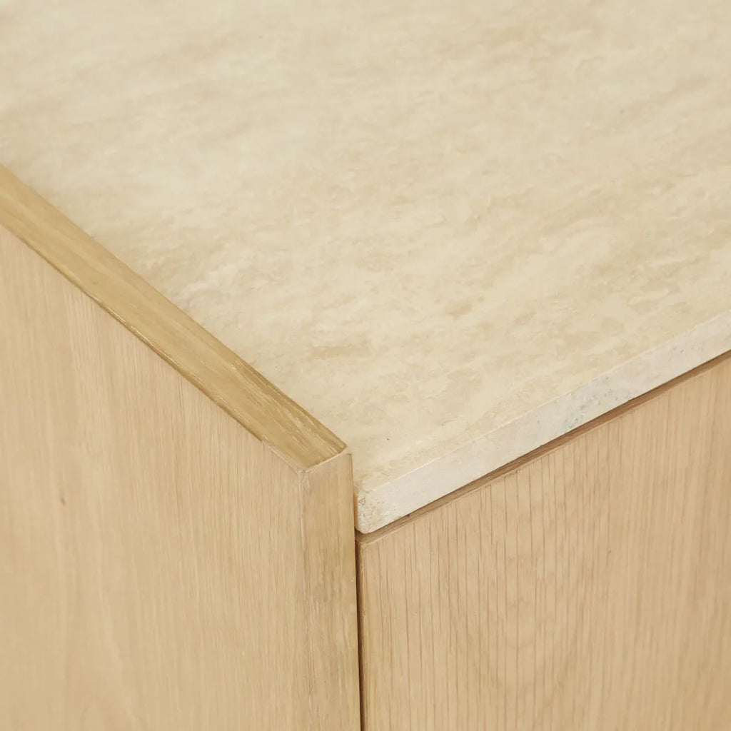 Scandinavian minimalism meets the beauty of natural materials through the Billie Marble Entertainment Unit. Warm natural travertine complements satin oak veneer surfaces creating a refined storage solution beneath a contemporary curved case. The slim frame and elevated case introduces a welcome lightness to living spaces in a timeless celebration of function and form.