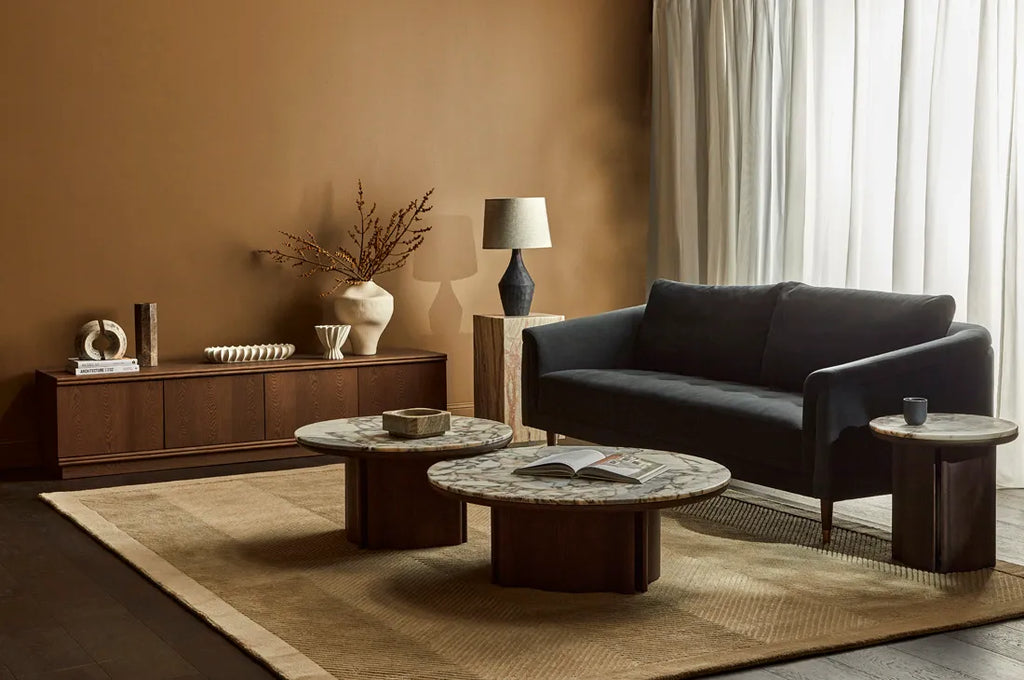 Sculptural grace defines the Leon Marble Coffee Table, where marble meets refined finishes. Natural veining flows across rounded surfaces, creating visual intrigue through organic patterns. Premium painted veneer forms an architectural pillar base, delivering striking balance beneath curved marble elements. This luxurious piece brings classical inspiration into modern spaces, perfect for sophisticated living areas requiring enduring beauty.