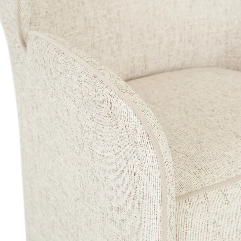 Timeless elegance meets contemporary comfort in the Ruben Armchair, where lush upholstery creates luxurious visual appeal. Graceful winged back detailing wraps you in refined sophistication, while contrast piping accentuates fluid curves throughout. Premium comfort flows from thoughtfully proportioned high back design, offering superior lumbar support for extended relaxation. This classic inspired silhouette brings enduring style to living spaces through considered elements.