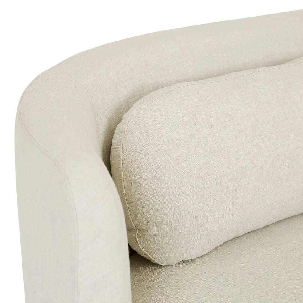 The Sidney Bay sofa exudes allure and elegance with its gracefully curved design, creating an organic silhouette that is visually appealing from every angle. Its fully upholstered construction is further enhanced by a thick base, giving it a sturdy and solid appearance that makes it a captivating focal point.