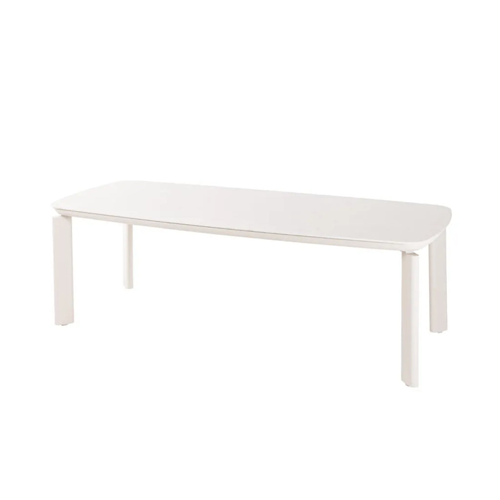 Refined outdoor entertaining reaches new heights with the Portsea Vogue Dining Table. Contemporary design elements merge through angled aluminium legs finished in ivory, supporting a stunning sintered stone surface. Subtle curved corners soften this sophisticated piece, creating harmonious flow across outdoor spaces. Powder-coated construction delivers lasting durability, making this stable centrepiece perfect for outdoor gatherings.