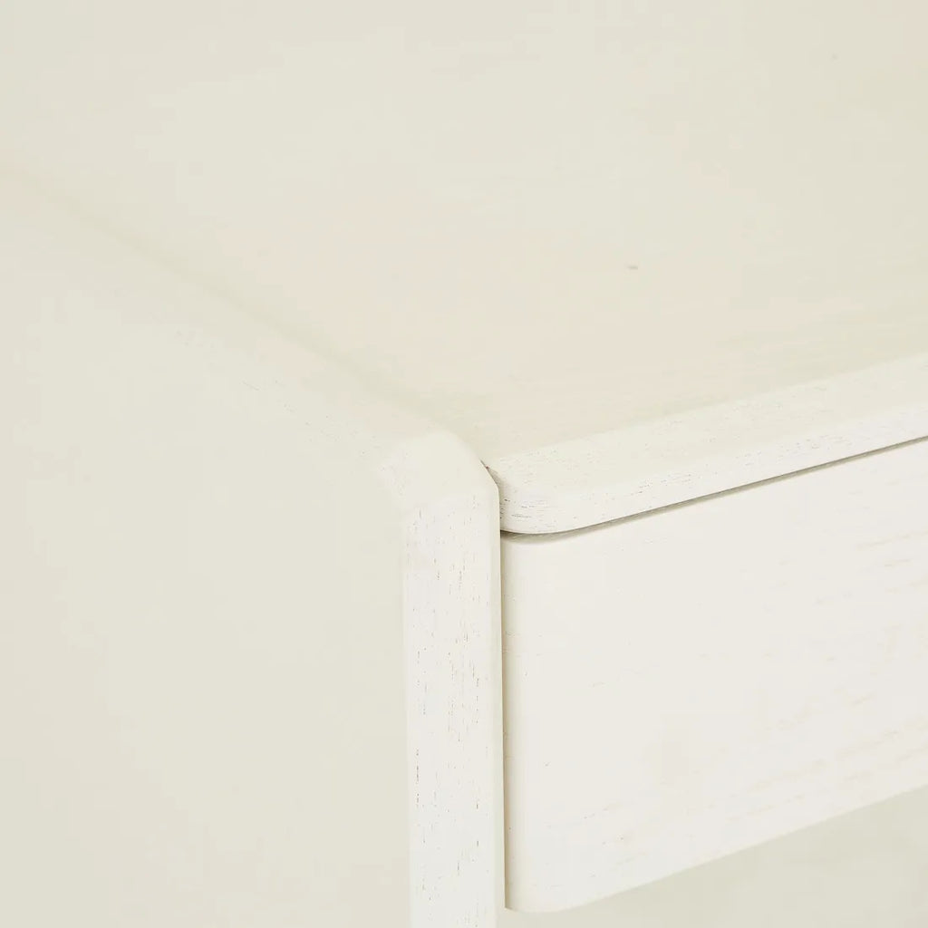 Crafted from ash wood veneer and and finished with a pu sealer - making it both sturdy and stylish. Comes with two soft close drawers with silver metal handles.
