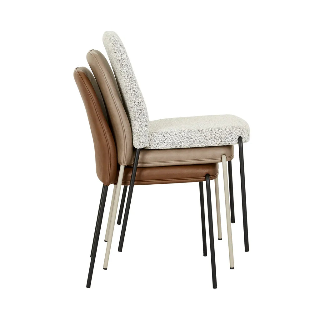 Effortless modern dining meets refined comfort in the Ace Stackable Dining Chair. The upholstery flows across graceful curves, supported by Matt Cashmere powder-coated legs for enduring style. Clean lines merge seamlessly with cushioning, creating adaptable seating suited to both intimate meals or large gatherings. Contemporary aesthetics blend perfectly with practical functionality, making this chair an intelligent choice for design-focused spaces.