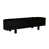 This sleek entertainment unit exudes contemporary style and will elevate any living area. Made of durable timber with a unique curved design, it offers plenty of storage space inside and a spacious surface for a TV. Keep your media accessories hidden in this attractive veneer unit, seamlessly complementing a variety of interior designs.