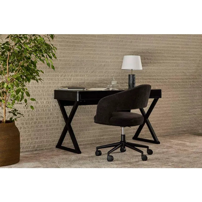 The classic barrel silhouette of the Norah office chair has been revitalized into a modern masterpiece. Its sleek and graceful design features a rounded back with a captivating cutout, all resting on effortlessly gliding casters. Experience the perfect blend of sophistication and function with the Norah office chair..