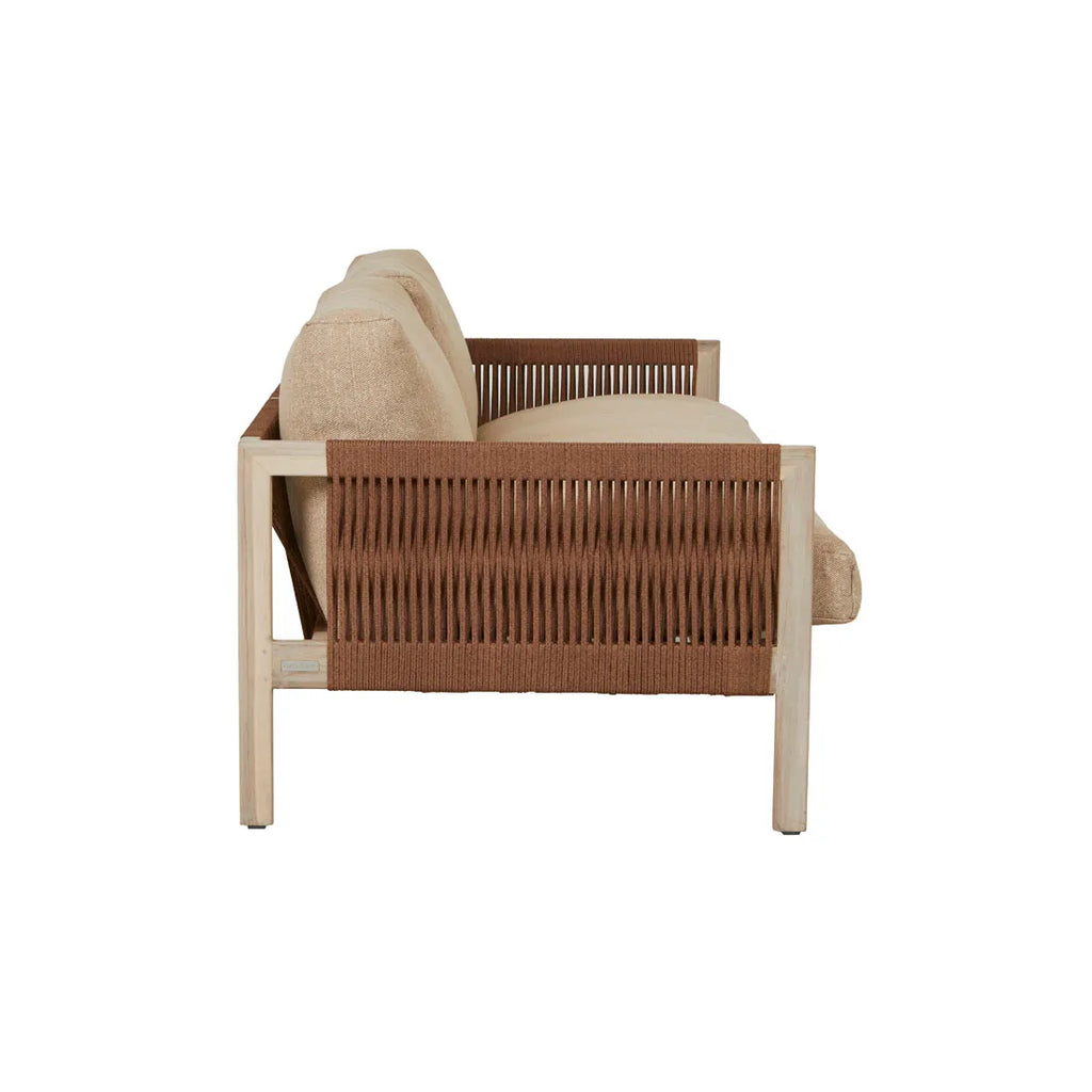 Defined by its clean lines and refined detailing, the Normandy Linear Sofa blends timeless craftsmanship with contemporary outdoor living. Set on a solid aged teak frame, the chair features a sleek linear weave in a soft Sesame tone, offering both visual texture and enduring comfort. Thoughtfully designed to bring understated elegance to any alfresco setting.