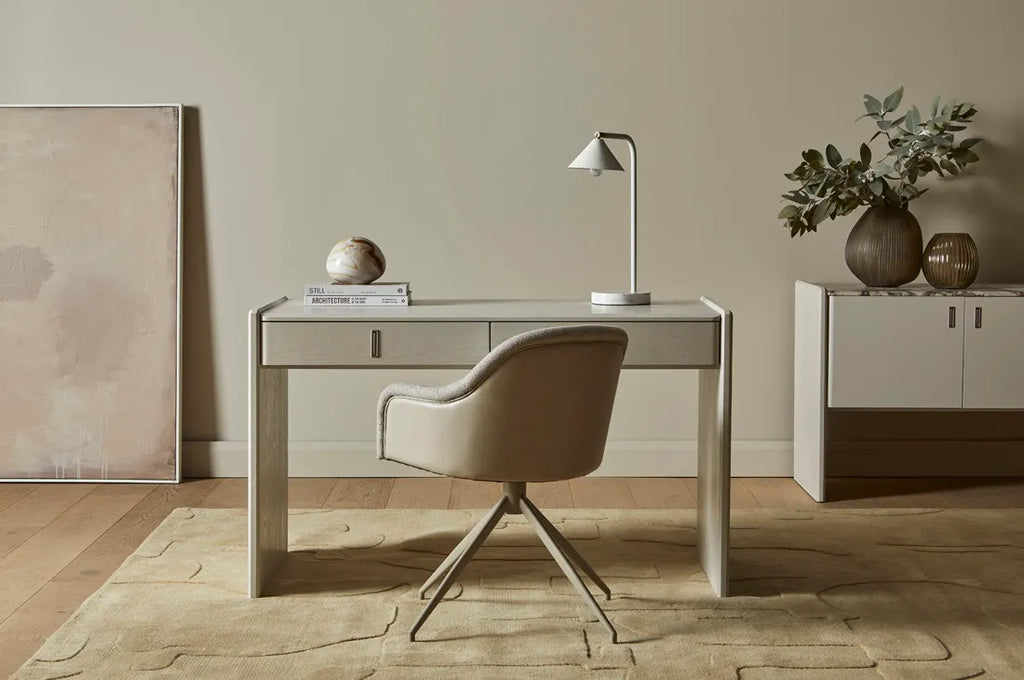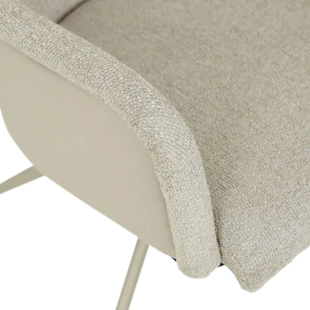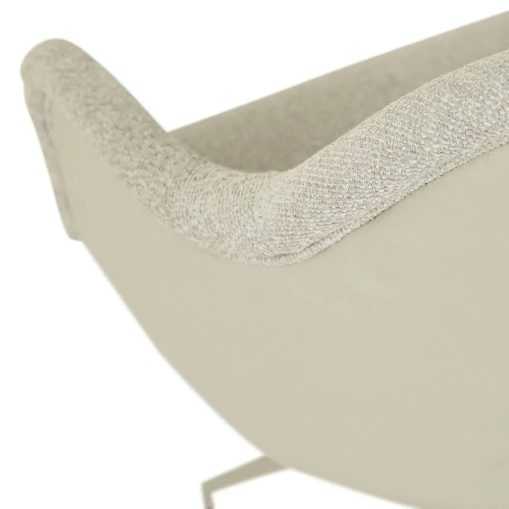 Contemporary design merges seamlessly with comfort through the Riley Piped Spider Leg Office Chair's distinctive two-tone aesthetic. Boucle fabric pairs harmoniously with Vintage Matt Brown PU fabric, creating visual intrigue across piped frame details. Seamless swivel movement allows smooth transitions while working, supported by sleek spider leg base.