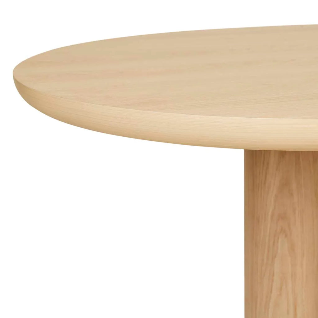 Crafted with an oval top and four pillar legs, the Seb Oval Dining Table stands out with its demi bullnose edge. This design marries contemporary aesthetics with classic elegance, providing a sophisticated dining experience. The wood grain veneer adds a rich, warm tone to the room, making it a perfect choice for those seeking a modern yet timeless dining table. Its sleek silhouette and quality materials ensure it will be cherished for years to come.