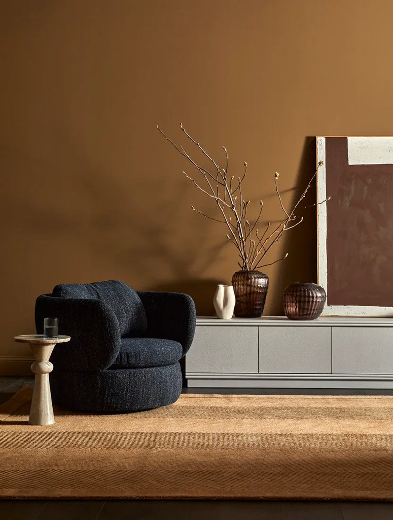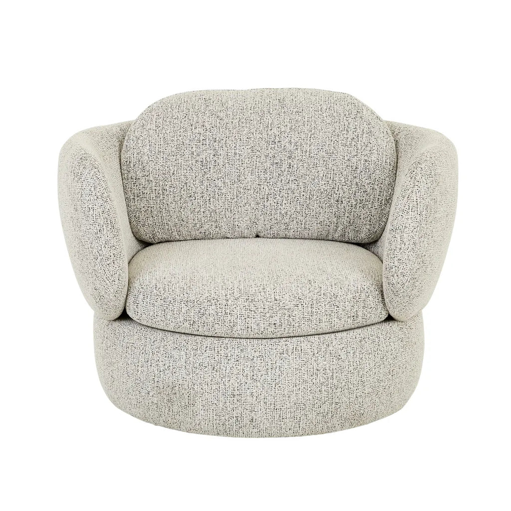 The Winona Occasional Chair combines contemporary elegance with cosy comfort. Featuring a rounded silhouette, cocooning arms and soft, plush cushioned comfort. The swivel base adds functionality, making it ideal for modern interiors. This chair enhances the overall aesthetic of any room with its sophisticated design.